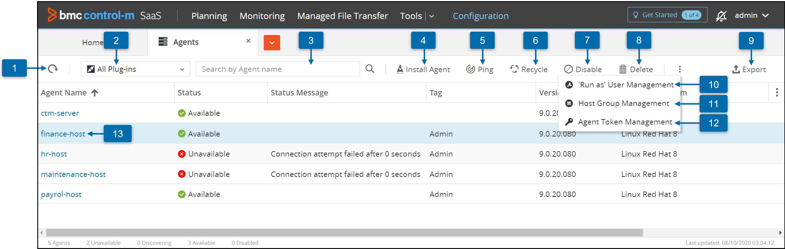 Enables you to delete the Agent from your environment. To fully remove the Agent, you need to uninstall it. |