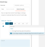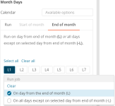 From Scheduling - Advanced, in the Month Days area, do one of the following: