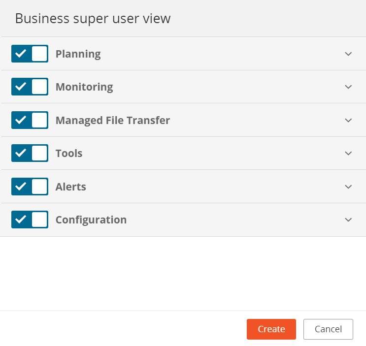 There are several sample User View profiles included in Control-M, that you can use and edit, or create new profiles to support your user roles and requirements. A Full View profile is included by default. You cannot edit or delete this profile.