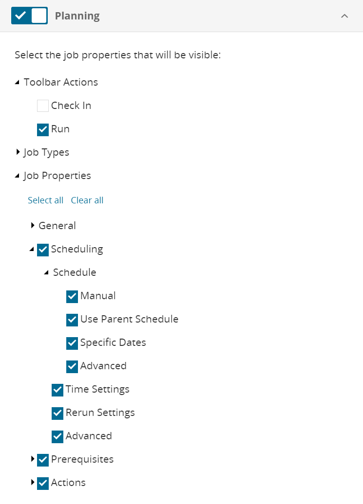 To select job properties to be visible to the user, select the checkbox.